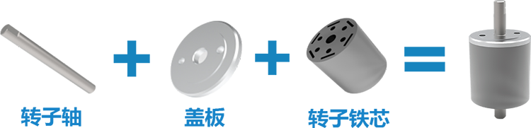 馬達(dá)轉(zhuǎn)子軸與鐵芯及蓋板過盈配合壓裝。