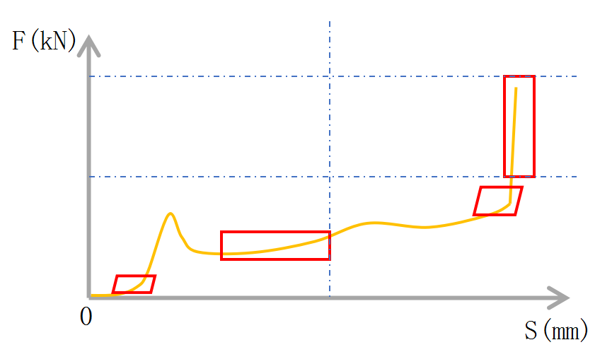 使用位置模式,將電機(jī)轉(zhuǎn)子軸垂直壓入轉(zhuǎn)子鐵芯及蓋板,經(jīng)歷接觸起力-壓裝平穩(wěn)-壓裝末端-壓裝極限四個(gè)階段,如下圖。