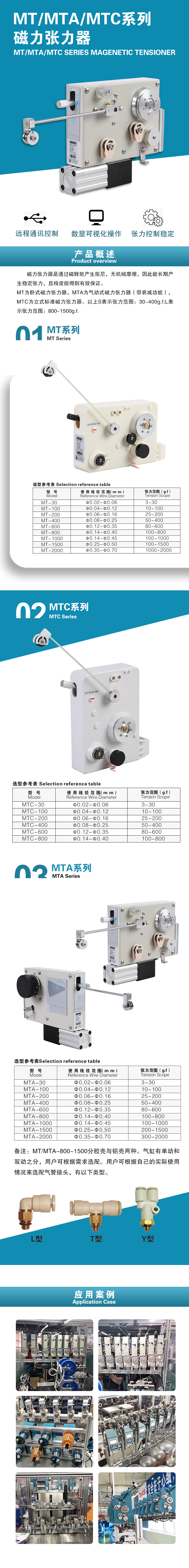 磁力張力器是通過磁轉矩產生阻尼,無機械摩擦,因此能長期產生穩定張力,且精度能得到有效保證。MTA為氣動式磁力張力器(帶衰減功能)。