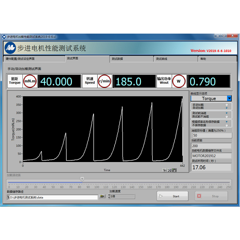 C0-MTHD- S100KT步進(jìn)電機(jī)測試系統(tǒng)用于測試步進(jìn)電機(jī)在不同頻率下的失步力矩,本系統(tǒng)實(shí)現(xiàn)了對步進(jìn)電機(jī)多種模式的控制,能夠?qū)崟r采集、存儲電機(jī)的電壓和電流、扭矩、轉(zhuǎn)速、功率等信號,并對數(shù)據(jù)分析處理以判斷電機(jī)運(yùn)轉(zhuǎn)狀態(tài)。