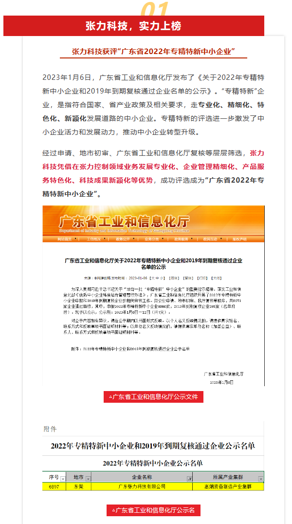 如期舉行,廣東省工業(yè)和信息化廳公示關于“廣東省2022年專精特新中小企業(yè)”名單,張力科技成功上榜!